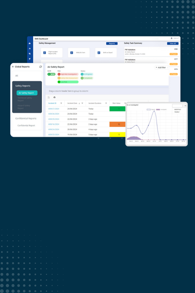 A fully integrated Enterprise Safety & Quality Management System for Airlines, Aviation Training Organizations (ATOs), Business Jets, MRO and Airports