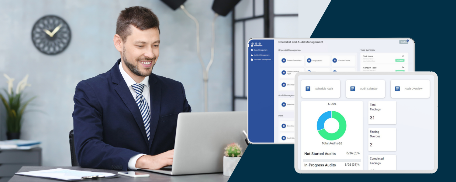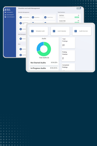 A system that allows creating question banks, choices & choice types with regulations attached. Making it easy to build checklists for audits and also schedule audits seamlessly. You can also get all audit reports and always be on track.